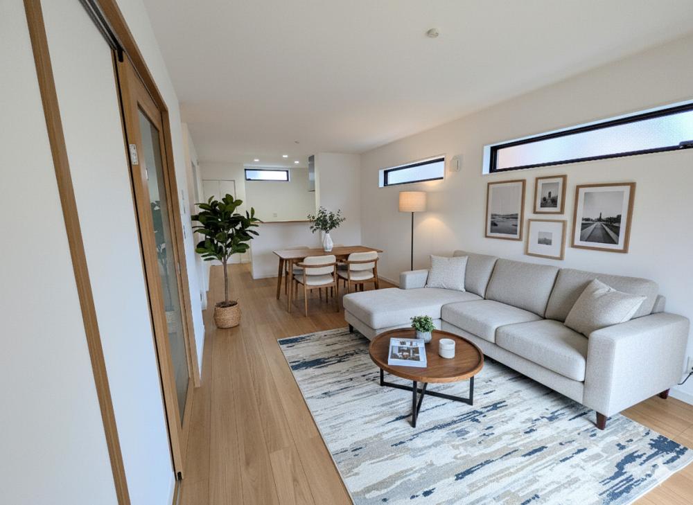 ホワイトを基調にした外観は、清潔感があり、明るく開放的な印象を与えます。光を反射して周囲の景観になじみやすく、家全体が洗練された雰囲気に見えるのも魅力です。